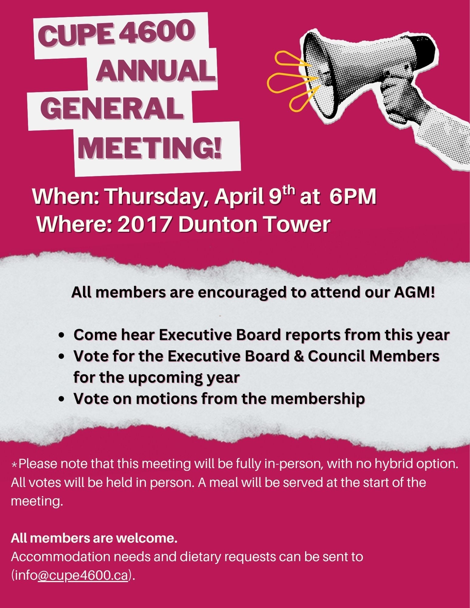 Please join us for our annual general meeting. We will have annual updates, board elections, and more. See your email for detailed  package. PLEAE NOTE: This meeting will be in-person only. Please arrive on-time in order to vote.