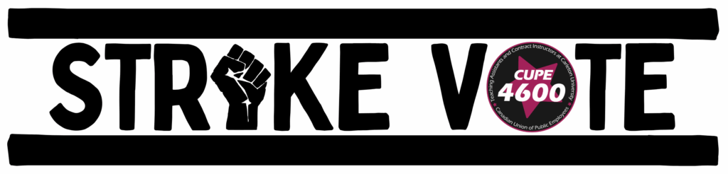 The Strike Vote for each unit will take place online and you should receive your ballot via email the Monday morning the week your unit’s Strike Vote is scheduled. If you have technical issues with the online ballot you should follow up with staff by email as quickly as possible (info@cupe4600.ca). Should technical issues persist, you will be able to schedule a time to vote in-person at the CUPE 4600 office on campus.